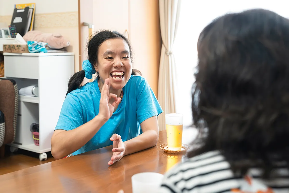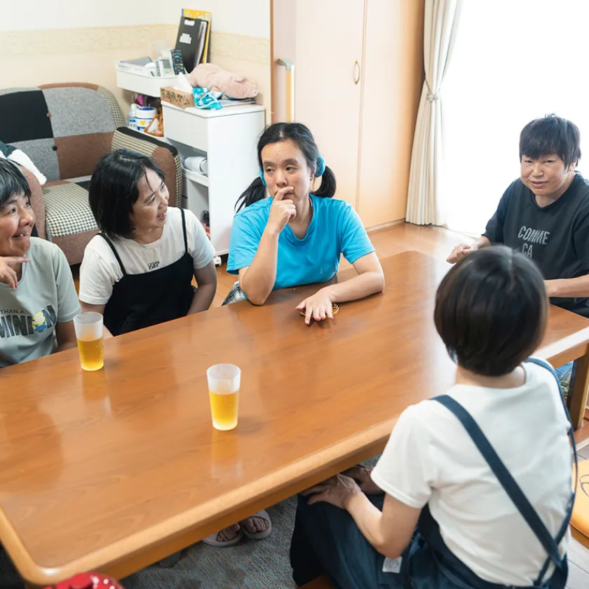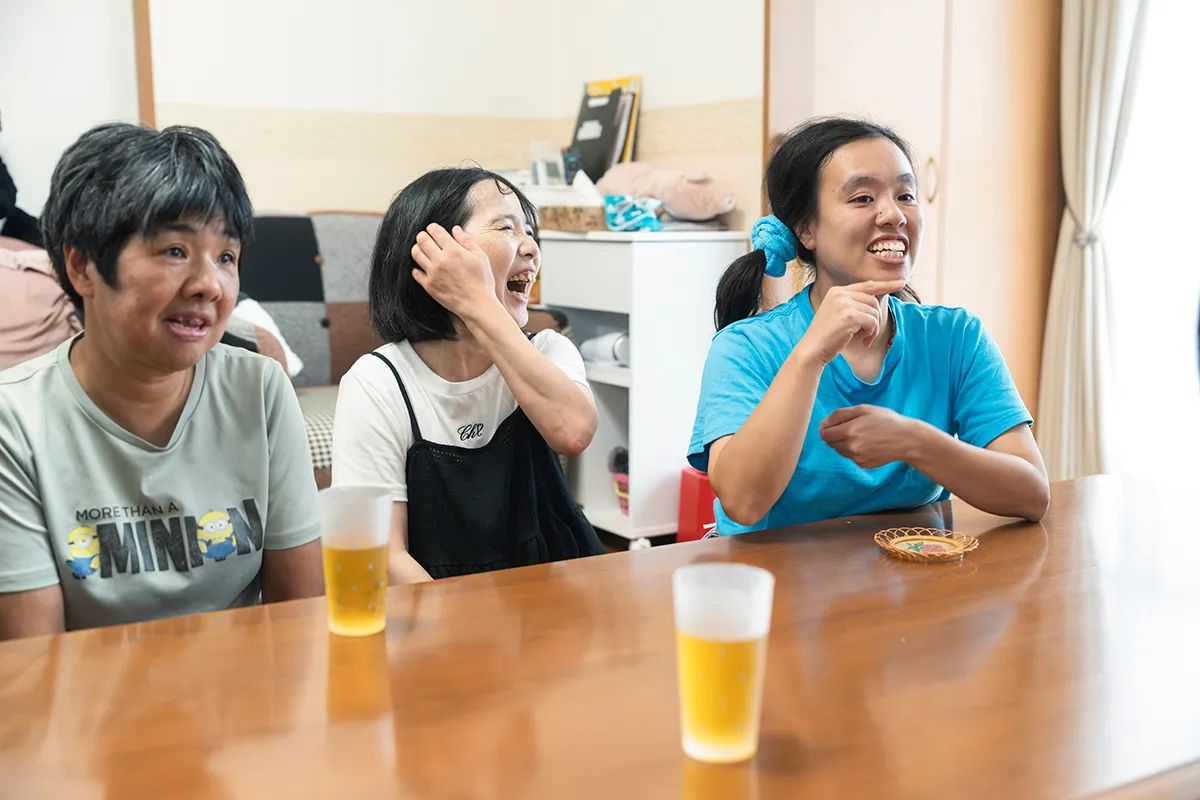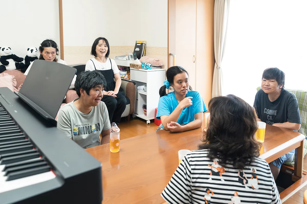 生活をサポートする世話人が、家事や健康管理など日常生活のサポートを行います。にっこりの世話人は、いつも優しいお母さんのような存在です。安心できる居場所をつくります。