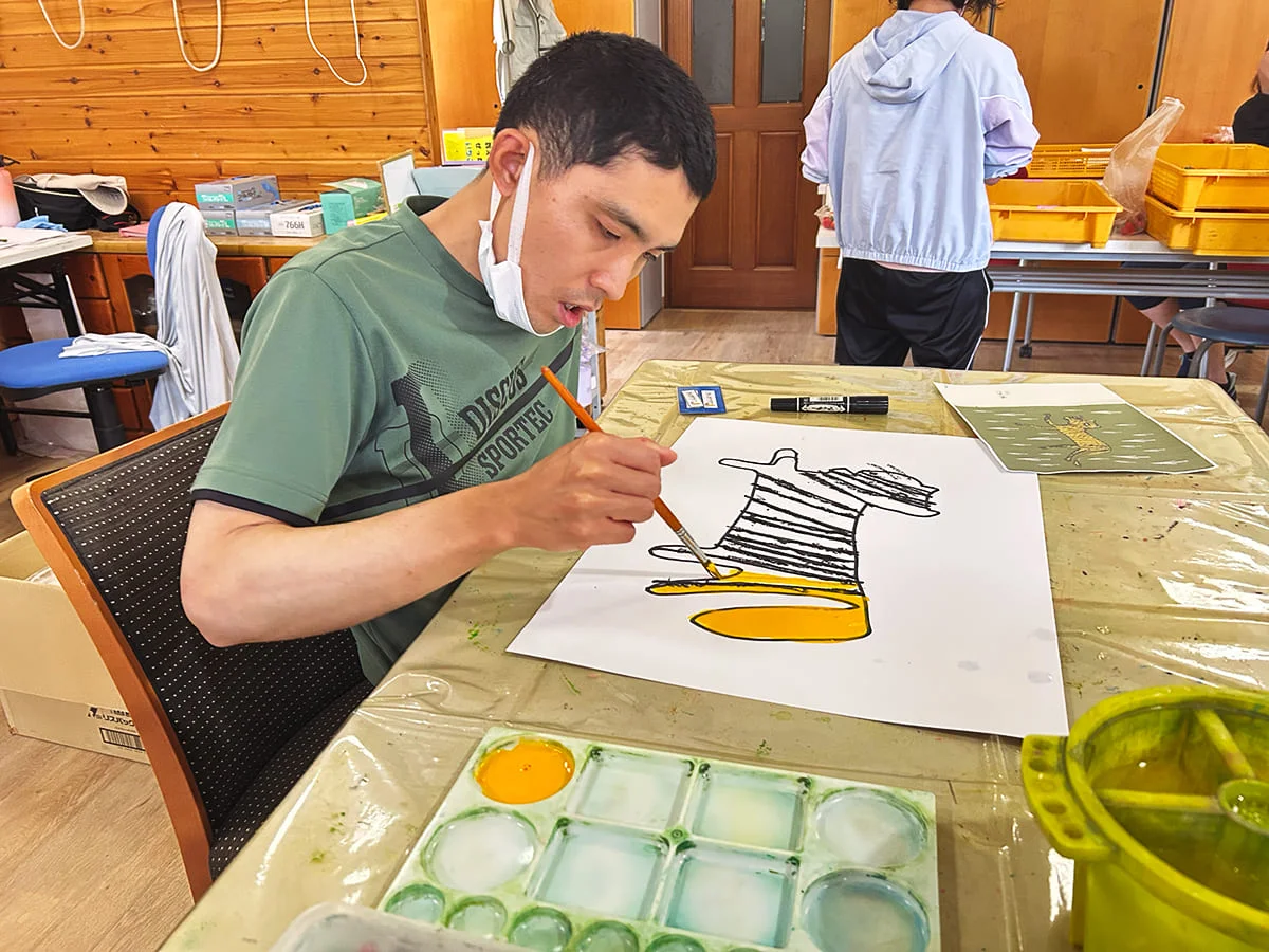 自力では行動範囲が限られてしまう利用者の方たちが、主体的に楽しめる機会をつくっています。月に2回開催される、絵画・エアロビクス・茶道・華道などのクラブ活動は、プロ講師の指導の下、本格的な体験ができるのが魅力です。参加は自由ですが、クラブを楽しみにしている利用者の方は多いです。また、コンビニやスーパーで買い物をする時間を設けたり、動物園や遊園地へのお出かけをしたりとほかにもイベントを用意しています。