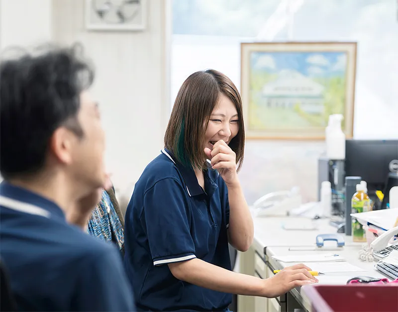 仕事内容だけでなくまほろばという場所を気に入ってくださり、仲間になれる方と出会いたいです。現場の職員同士には、深い絆があると思っています。お互いを想いあい、助け合えるのがいいところですね。仕事の話はもちろん、テレビや推し、家庭のことなどなんでも話せます。家族と同じくらい私を理解してくれているかもしれませんね。